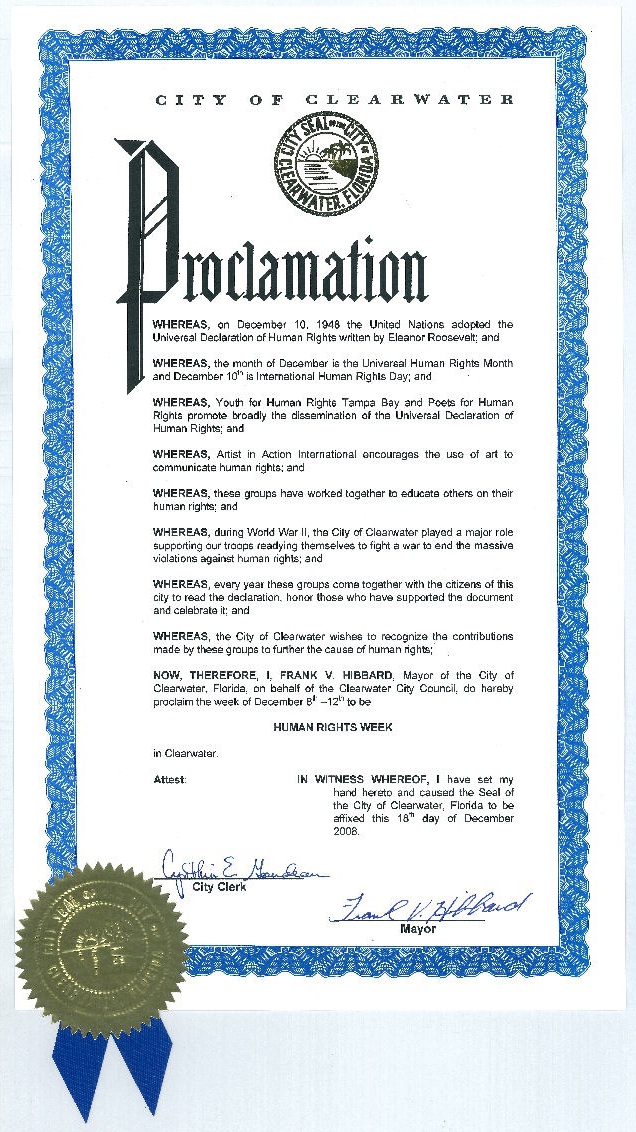 2008年 ― クリアーウォーター市長による宣言。